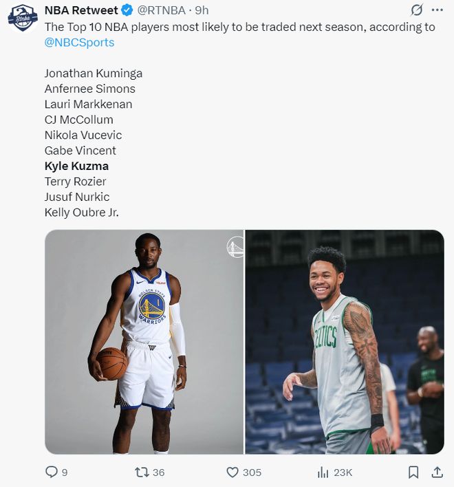 在NBC预测的将被交易的球员名单中,库兹马也榜上有名,他跟库明加、安芬尼-西蒙斯、麦科勒姆等人一同上榜。