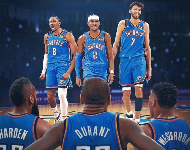NBA新赛季即将开启,在过去4个月的休赛期中,联盟30支球队家家有本难念的经,老中青三代球星有人欢喜有人愁。最大的赢家无疑是雷霆新三少,他们带队夺得队史首个NBA总冠军之后,亚历山大签下4年2.72亿美金的超级顶薪大合同,杰伦威和霍姆格伦也各自签下5年2.39亿美金美金的指定新秀条款顶薪合同。更离谱的是,雷霆队新赛季17人大名单总薪资仅有1.869亿美金,低于奢侈税线(1.879亿美金)。也就是说,卫冕冠军可以一边冲冠,一边瓜分其他球队缴纳的巨额奢侈税!雷霆新三少名利双收,携手并进,未来不可限量;雷霆老三少却早已散落天涯,冷暖自知。